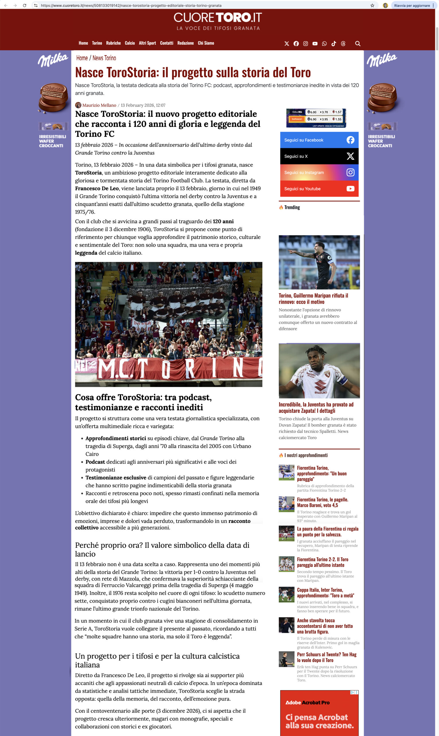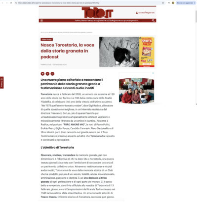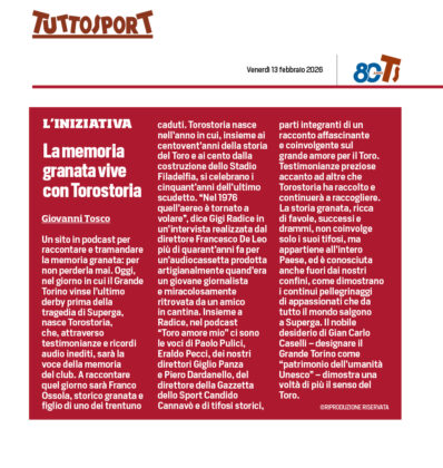 Dal 13 febbraio 2026 è online Torostoria: la voce della Storia granata in podcast.